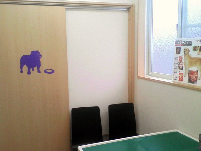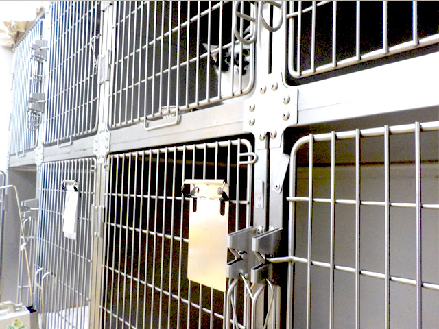 入院室(犬・猫):入院ストレスを少なくするため、犬用・猫用の部屋に分かれています。冷暖房完備です。