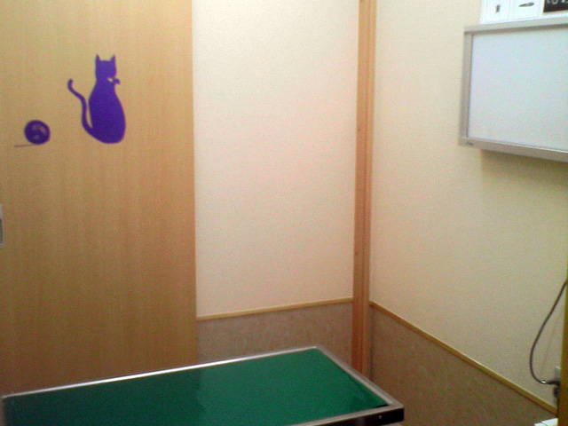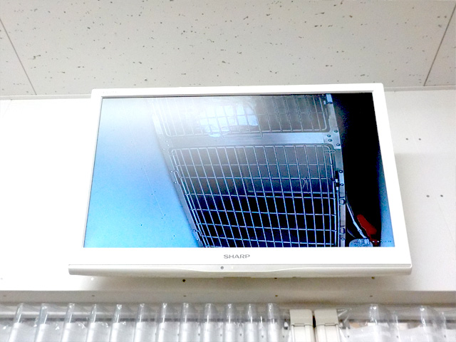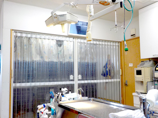 隔離入院室:伝染病の子の治療を行い、院内感染を防ぐため、屋外から出入りします。院内のモニタにて常時様子も見る事ができます。